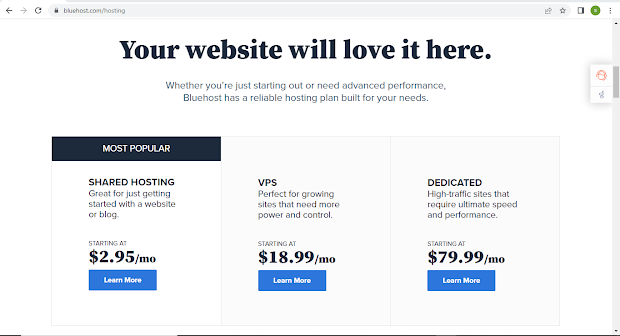Example #4: BlueHost Single Shared Hosting starts at just $2.95/month and they provide the best services too. (order here).
